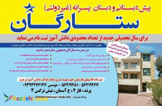 دبستان پسرانه غیردولتی ستارگان ?در مدرسه ستارگان همچون ستاره بدرخشید ? 09394276146