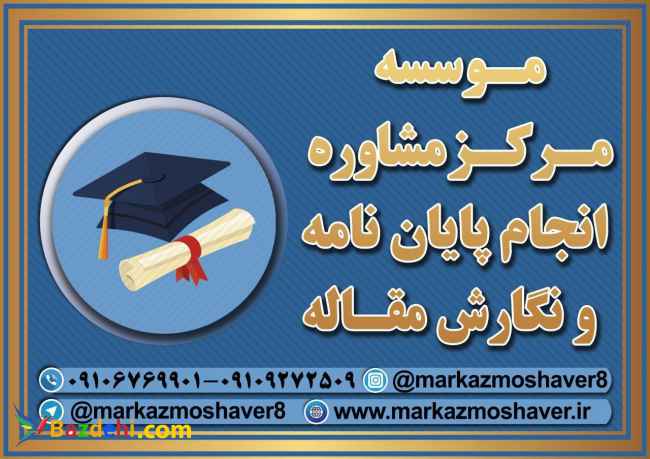 مشاوره در نگارش پایان نامه کارشناسی ارشد ورساله دکتری در تمامی رشته ها با بهره گیری از اساتید مجرب دانشگاه های معتبر تهران و کشور موسسه مرکز مشاور کار خود را از سال 93 در ضمینه مشاوره پایان نامه و پروپوزال کارشناسی ارشد و رساله دکتری و همچنین نگارش مقاله ارشد و دکتری و تحلیل آماری شروع کرده است. ارتباط مستقیم و آسان با متخصص انجام پروژه و خدمات بدون محدودیت در اموزش نرم افزاری پروژه و پشتیبانی صحت فایلهای پروژه تا یک ماه بعد از انجام پروژه از مواردیست که برای از بین بردن نگرانی شما عزیزان نسبت به پروژه تان در نظر گرفته ایم. شما می توانید از طریق سایت موسسه مرکز مشاور یا تماس با شماره های زیر سفارش خود را ثبت نمایید. شماره تماس: 09106769901- 09109272509- 03145267077
