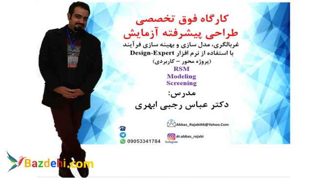 آموزش و انجام پروژه فوق تخصصی نرم افزار طراحی آزمایش - غربالگری و RSM به روشهای طراحی مرکب مرکزی (CCD) و (BBD) دکتر عباس رجبی ابهری آموزش جامع و کاربردی نرم افزار بصورت پروژه محور - غیر حضوری به همراه جزوه - 2 میلیون تومان (5 جلسه 2 ساعته)-درصورت درخواست افزایش تعداد جلسات آموزشی، به ازای هر جلسه دو ساعته 200 هزارتومن به مبلغ مذکور افزوده خواهد شد. انجام پروژه (تحویل کامل و با کیفیت پروژه و اصلاحات لازم شامل پیش بینی نتایج، مدل سازی ریاضی و بهینه سازی عددی و گرافیکی به همراه دو جلسه دو ساعته آموزش جهت آمادگی برای جلسه ارائه و دفاع) - 3 میلیون تومان.
