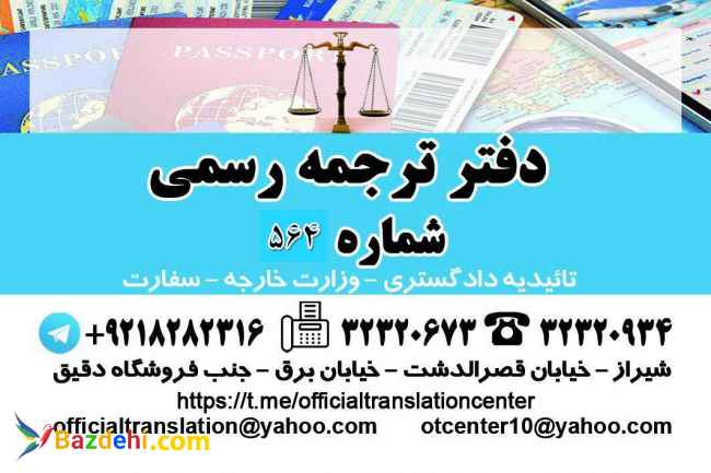 ترجمه رسمی کلیه اسناد و مدارک به همه زبانها با تاییدات دادگستری و امورخارجه و سفارت تعیین وقت سفارت پرداخت با مسترکارت تایید مدارک تحصیلی و ریزنمرات توسط وزارت علوم و وزارت بهداشت ترجمه عادی در اسرع وقت پذیرفته می شود.