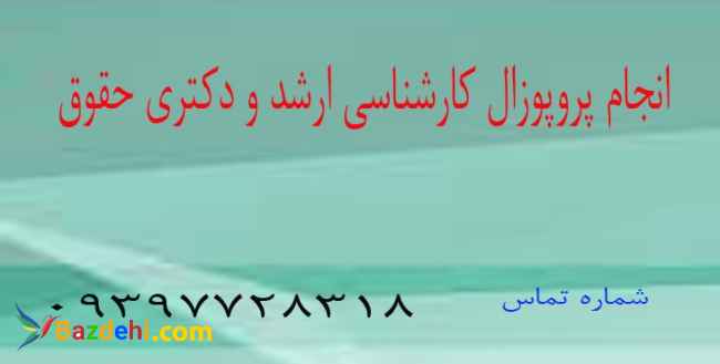 نگارش پروپوزال در همه گرايش هاي حقوق در سريعترين زمان ممکن و توسط کارشناسان مجرب. حقوق خصوصي حقوق جزا و جرم شناسي حقوق عمومي حقوق بين الملل حقوق بشر حقوق مالکيت فکري حقوق خانواده حقوق محيط زيست حقوق ثبت و اسناد و نگارش کار کلاسی رشته حقوق در تمامی گرایش ها پذیرفته می شود. انجام کليه امورات فوق در سريع ترين زمان ممکن و توسط کارشناسان مجرب انجام خواهد گرفت. جهت سفارش يا ثبت درخواست با شماره ذيل تماس بگيريد. شماره تماس: 09397728318 عبدالله زاده ساعات تماس: همه روزه از ساعت 9 الي 21