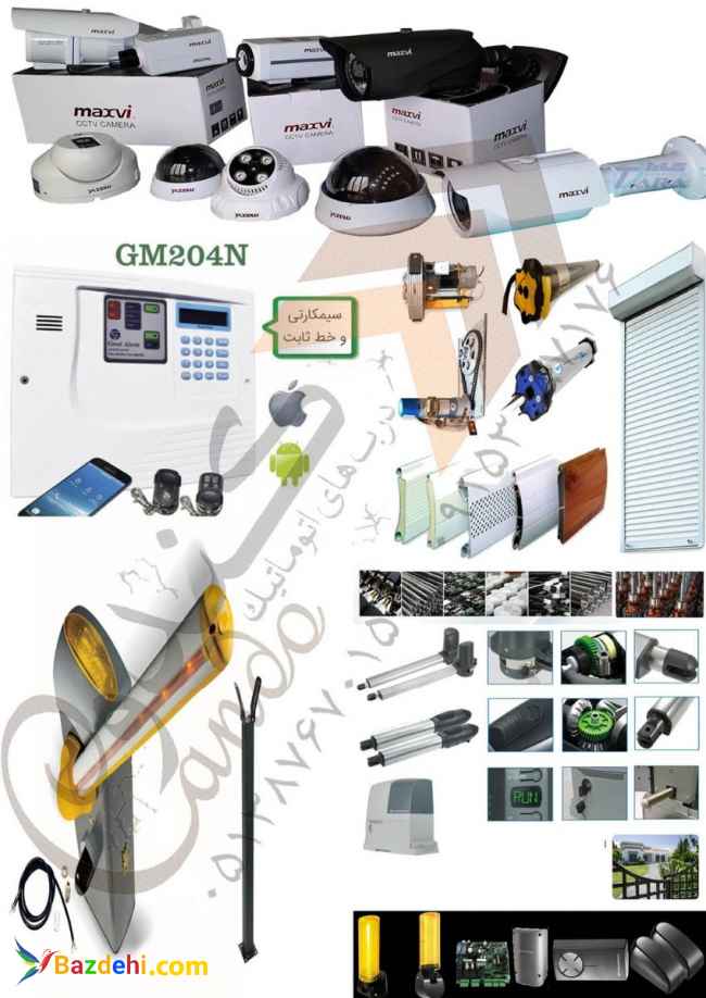 ) شیشه ای،پارکینگی،کرکره برقی,,راهبند, پرده هوا,انواع قفل برقی,آرام بند,دستگاه اثر انگشت,سایبان برقی (