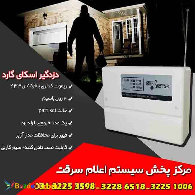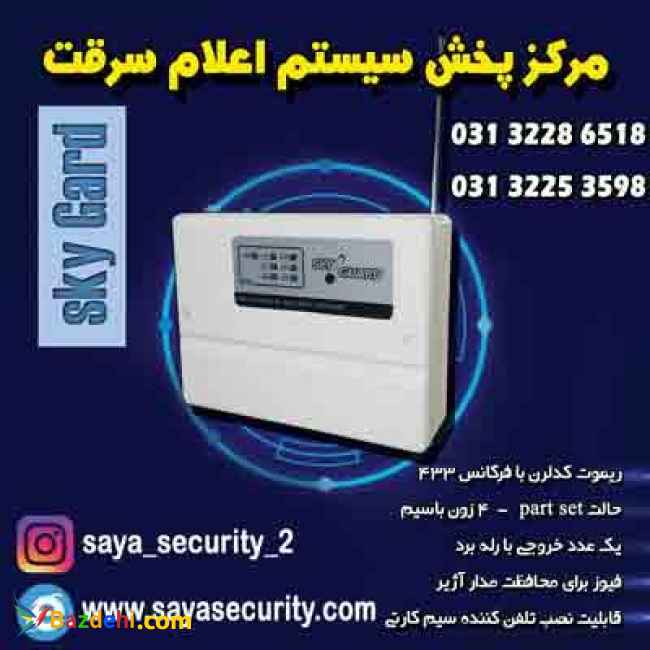 سیستم اعلام سرقت وسيله ای است که به هنگام گذر از يک حريم خصوصی با اعلام صدا اين عمل غيرقانونی را اعلام مي کند.دزدگيرهای موجود در بازار هر چند از لحاظ ظاهری در انواع و اشکال مختلفی ارائه شده اند، ولی همگی آنها دارای يک ساختار مشترک می باشند. اکثر این سیستم ها دارای يک خط تحريک بسته ، که محل وصل حسگرهای بسته مي باشد،ودارای کنترل از راه دور(ريموت کنترل ) جهت روشن و خاموش کردن دستگاه هستند. همچنين مدارهای دزدگير شامل مدار فرستنده-گيرنده ، مدار شارژ باتری اضطراری و مدار آژير ميباشد و در نهايت دزدگيرها ممکن است مجهز به تلفن کننده خودکار در هنگام تحريک نيز باشند. ریموت کدلرن با فرکانس 433 (8ریموت) 4 زون باسیم (محافظت شده در برابر شوک) حالت PART SET (حذف زون 3 و 4) یک عدد خروجی با رله برد فیوز برای محافظت مدار آژیر خروجی سریال برای نصب تلفن کننده سیم کارتی متفاوت باشید !!! وقتی هزینه می کنید ، بهترین ها حق شماست.