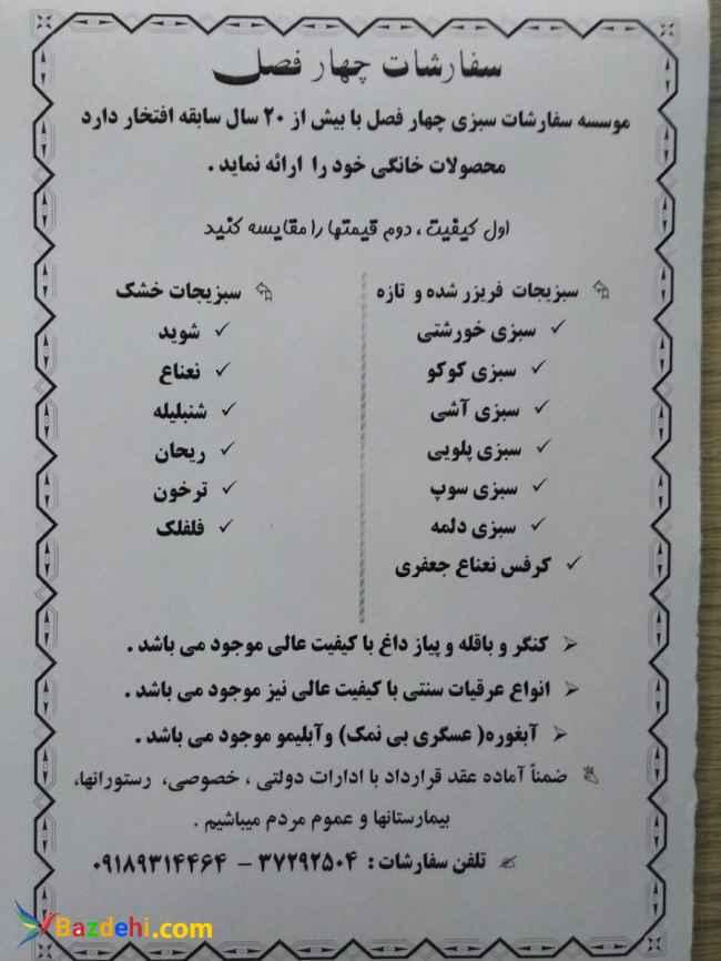 فروش سبزی تازه آماده،سبزی خشک،باقله،پیاز داغ،سبزی خورشتی،سبزی آش،سبزی دلمه،آبغوره و...