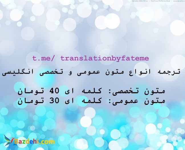 -ترجمه انواع متون عمومی و تخصصی انگلیسی + تایپ رایگان -فارغ التحصیل برق خواجه نصیر ترجمه متون تخصصی: کلمه ای 40 تومان ترجمه متون عمومی: کلمه ای 30 تومان 09197148589