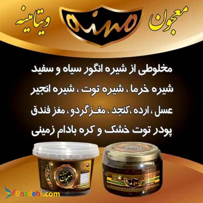 با سلام معجون صد در صد طبیعی مخلوطی بی نظیر از : شیره انگور سیاه و سفید شیره خرما،شیره توت،شیره انجیر، عسل،ارده،کنجد،پودر توت خشک، مغز گردو،مغز بادام،مغز فندق،کره بادام زمینی خواص: بسیار مقوی جهت قوای جسمی تقویت کننده قوای جنسی به دلیل دارا بودن انواع شیره ها در معجون مفید برای کم خونی... این محصول توسط دکترهای طب سنتی و داروهای گیاهی(عطاری ها) مورد تجویز قرار میگیرد، تماس با : 09031286969 ساعت 9 صبح تا 18