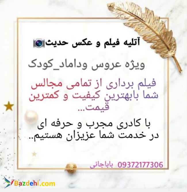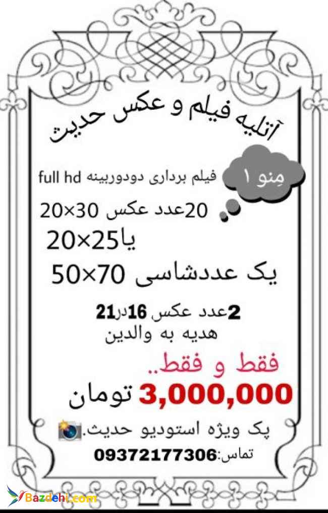 آتلیه فیلم و عکس حدیث مراسم ها برای تمامی شهرهای استان تهران،استان البرز و استان قزوین(آبیک)پذیرفته میشود… تلفن همراه : 09372177306 تلفن ثابت : 02645345168 ایمیل این آدرس ایمیل توسط spambots حفاظت می شود. برای دیدن شما نیاز به جاوا اسکریپت دارید آدرس سایت: http://studiio.hadis.ir اینستاگرام: https://www.instagram.com/studiio.hadis نام و نام خانوادگی حدیثه باباجانی نام واحد تجاری آتلیه حدیث استان البرز امکانات کارت خوان, مشاوره رایگان, فضای باز, مناسب برای کودکان, بیرون بر, فروش اقساطی آدرس : استان البرز،شهرستان نظراباد،خیابان امام خمینی،تقاطع نگارستان 13پلاک 220 (اتلیه فیلم و عکس حدیث با کادری مجرب) درخدمت شماعزیزان هستیم… ⭐منو شماره 1⭐ *فیلم برداری دودوربینه full hd* *20عدد عکس 《20در30》 ** یک عددشاسی 《50در70》* *دو عدد عکس《16در21》هدیه به والدین* *قیمت فقط و فقط 3,000,000(سه میلیون)تومان*?? ⭐منو شماره2⭐ *فیلم برداری دو دوربینه full hd* *کلیپ فرمالیته درباغ * *20عددعکس《20در30》** یک عددشاسی《50در70》* *دو عددعکس《16در21》هدیه به والدین* *قیمت فقط و فقط 3,900,000(سه میلیون و نهصدهزار)توماان*?? ⭐منو شماره3⭐ *فیلم برداری دودوربینه full hd* *کلیپ فرمالیته درباغ* *آلبوم دیجیتال سایز《30در60》* *یک عدد شاسی《50در70》* *دو عددعکس 《16در21》هدیه به والدین** ?قیمت فقط و فقط《5,000,000》{پنج میلیون}توماان? رضایت شما اعتبارمااست? نمونه کار فقط در آتلیه قابل مشاهده میباشد.. برای عقد قرارداد هرچه زودتر تماس حاصل فرمائید…* با تشکر مدیریت آتلیه حدیث.. تماس:09372177306 باباجانی تلگرام:https://t.me/studiio_hadis ادرس پیج اینستاگرام:https://www.instagram.com/studiio.hadis آتلیه عروس و داماد آتلیه عکاسی حرفه ای آتلیه عکاسی عروس با قیمت مناسب آتلیه عکس عروس آتلیه کودک قیمت مناسب
