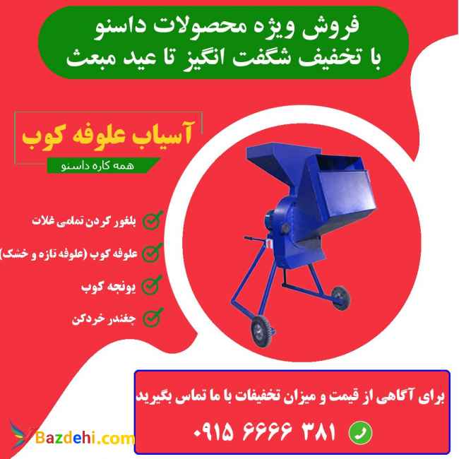دستگاه همه کاره بزرگ آسیاب کن غلات ، علوفه و چغندر خرد کن این دستگاه مناسب برای دامداری های متوسط وخانگی ، میتوان الکتروموتور تکفاز یا 3 فاز با دور 3000 روی آن نصب کرد . همراه آسیاب 2 عدد توری تنظیم سایز آسیاب و همراه علوفه خردکن 1 عدد – امکان تهیه توری اضافی موجود است . رنگ کوره ای و 2 چرخ مناسب که حمل و نقل دستگاه را راحت می کند رنگ دستگاه با توجه به موجودی و دستگاه در حال ساخت متغییر هست قیمت با الکتروموتور 3 اسب می باشد