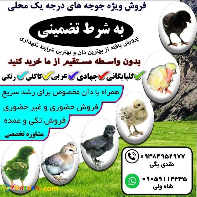 ? *شرکت تولید، تکثیر و پخش طیور شاه بیگی*? فروش ویژه انواع جوجه ها و نیمچه های درجه یک محلی به شرط تضمینی پرورش یافته از بهترین دان و بهترین شرایط نگهداری بدون واسطه از ما خرید کنید!!!??? ✅ جوجه مرغ و خروس محلیِ تخم گذار نژاد گلپايگان (اصلاح نژاد شده) ✅ جوجه نژاد جهادی ✅ جوجه نژاد عربی ✅ جوجه نژاد کاکلی ✅ جوجه نژاد گردن لخت ✅ جوجه رنگی ✅ اردک ? فروش حضوری و غیر حضوری ? فروش تکی و عمده ? همراه با دان مخصوص جهت رشد سریع ? مشاوره تخصصی ارسال به شهرستان نیز انجام میگیرد. ? 09384952977 نقدی بگی ? 09059114335 شاه ولی
