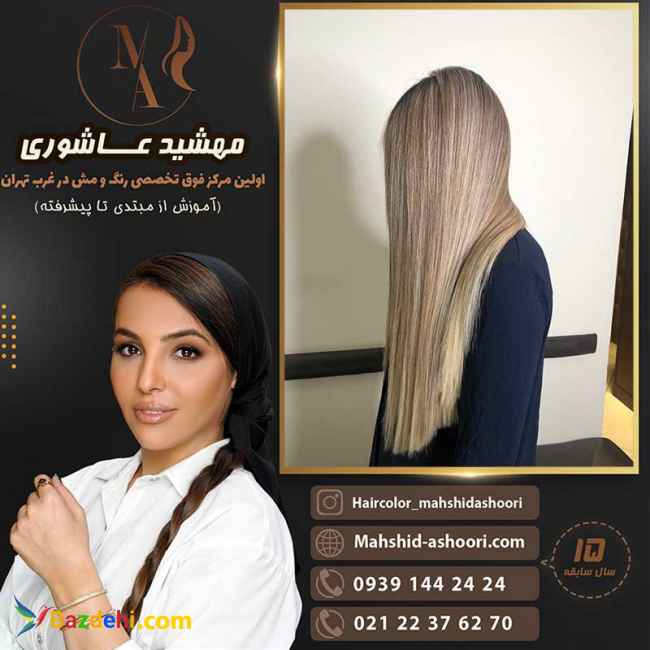 خانم مهشید عاشوری مدیریت معروف ترین مرکز تخصصی رنگ و لایت مو در غرب تهران ارائه دهنده تخصصی ترین خدمات رنگ و لایت مو با بروزترین متدهای دنیا می باشد. خدمات رنگ و لایت مو باکیفیت باید حتما در مرکزی تخصصی و تحت نظر متخصصان باتجربه انجام گیرد تا بهترین نتیجه حاصل شود. خانم مهشید عاشوری در بزرگترین مرکز تخصصی رنگ و لایت مو درغرب تهران نهایت تلاش خود را به کار گرفته تا با ارائه باکیفیت ترین خدمات رنگ و لایت مو با استفاده از معتبرین متریال رنگ مو درجه یک رضایت مطلوب مشتریان خود را بدست اورد و زیبایی را در عین سلامت مو به ان ها هدیه دهد. برای مراجعه به مرکز تخصصی رنگ و لایت مو مهشید عاشوری با ما در ارتباط باشید.