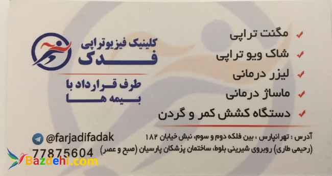 درمان بی حسی ها و ناتوانیهای حرکتی در بیماران دیابتی فیزیوتراپی بعد از جراحی ها درمان دردهای زانو و کمر و سیاتیک مشاوره و درمان بیماری های عصبی و عضلانی شکستگی ها و سکته مغزی خار پاشنه و پوکی استخوان درمان بیماران ام اس و ضربه های مغزی و درمان چسبندگی های رحم و تخمدان لیزر درمانی ماساژ درمانی شاک ویو تراپی مگنت تراپی