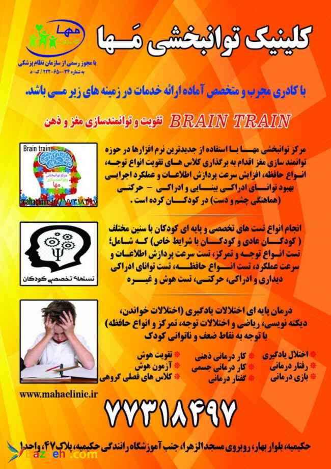 7- توانمندسازی ذهن کودکان brain train؛ یکی از درمانهای جدید در بهبود انواع توجه، انواع حافظه و توانای های شناختی و افزایش هوش کودکان