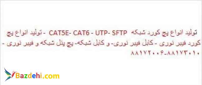 تولید پچ کورد های شبکه کامپیوتری ) CAT5 , CAT6 ( UTP,FTP.SFTPدرمتراژ مختلف بصورت تمام صنعتی و با کیفیت و تست فلوک / ضمانت تعویض