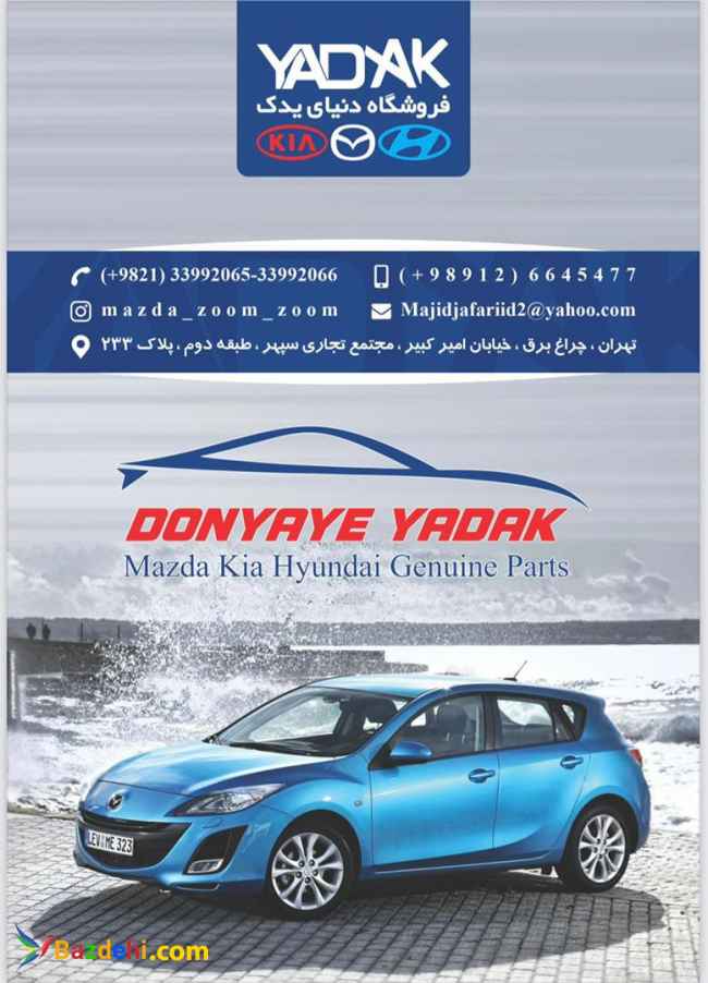 فروش لوازم یدکی و قطعات جانبی تمامی خودروهای مزدا (-2000-1600-FL ,GLX مزدا 3, مزدا 3 NEW و مزدا2) بدنه و موتوری نو و استوک از ژاپن، چین، تایوان و دوبی با پاسخگویی شبانه روزی با مهندسین و متخصصین کمپانی گروه بهمن تمامی قطعات کمپانی مزدادارای گارانتی طلایی بوده و در صورت عدم رضایت خودروی شما بصورت رایگان تعمیر و در اختیار شما قرار میگیرد سواری ادرس : تهران چراغ برق خیابان امیر کبیر پاساژ سپهر طبقه دوم پلاک233 02133992065 02133992066 09126645477 وانت آدرس: تهران چراغ برق خیابان امیرکبیر پاساژکاشانی ط 3 پلاک 325 تلفن تماس: 09127988567 (021) 3399-2065 (021) 3399-2066 تهران، تهران چراغ برق خیابان امیر کبیر پاساژکاشانی طبقه سوم پلاک 325 اینستاگرام https://www.instagram.com/mazda__zoom__zoom