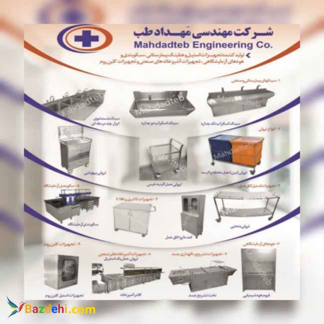 شرکت تولیدی و مهندسی مهداد طب تولید کننده انواع سینک اسکراب ، کمد استیل ، میز استیل ، سینک شستشوی ابزار ، سینک ست شویی ، کابینت استیل، بنچ استیل ، کلینیکال سینک ، سینک اسکراپ ، قفسه استیل ، تخت تشریح جسد ، کمد دارو ، قفسه دارو، وان استیل ، ،ترالی پک استریل ، ترالی اتاق عمل ، ترالی منحنی ، ترالی مستطیل ، ترالی پانسمان ، ترالی اورژانس ، ترالی حمل دارو ، ترالی بین ملحفه کثیف، ، ترالی ابزار اتاق عمل ، ترالی لاندری ، وان پت ، سکوبندی استیل آزمایشگاه ، میزبندی استیل آزمایشگاه ، سینک گچ گیری (باریم) ، سینک شستشوی نوزاد ، قفسه پک استریل ، پمپ بتادین ، ظروف استیل سفارشی ساز، شیر آرنجی ، شیرآلات بیمارستانی ، تجهیزات لاندری ، استریل و شستشو ، تجهیزات استیل بیمارستانی ، صنایع غذایی ، اتاقهای تمیز( کلین روم) و … با بیش از 14 سال سابقه فعالیت ، اقدام به تولید و عرضه محصولات زیر می نماید : سینک اسکراب کمد استیل قفسه استیل استیل میز سینک شستشوی ابزار سینک ست شویی سینک آندوسکوپی ترالی ست جراحی ترالی حمل پک استریل ترالی منحنی ترالی مستطیل کلینیکال سینک کمد دارو ( قفسه دارو ) ترالی پانسمان میز پکینگ CSR بنچ استیل سینک اسکراپ تخت تشریح جسد ترالی جراحی قلب ترالی مستطیل ترالی بیهوشی استیل میز پکینگ ترالی البسه خیس سینک آزمایشگاهی قفسه CSR ( قفسه پک استریل ) پمپ بتادین شیر آرنجی سکوبندی استیل آزمایشگاه ( میزبندی استیل آزمایشگاه ) کابینت استیل سینک گچ گیری (باریم) سینک شستشوی نوزاد ترالی اورژانس ترالی حمل دارو ترالی منحنی ترالی بین ملحفه کثیف ترالی ابزار اتاق عمل ترالی لاندری وارمر غذا (گرمخانه سیار- ترالی حمل غذای گرم) ترالی ECG استیل ترالی لگن ترالی برس اسکراب ترالی کوتر استیل ترالی تزریقات استیل ترالی البسه خیس سینک آزمایشگاهی میز توزین هود استیل آزمایشگاهی هود شیمیایی استیل کمد مواد شیمیایی استیل میز تشریح جسد وان فیکس جسد وان نگهداری جسد برانکارد جسد تلفن:09192063546–02155277555 الی 7 کانال تلگرام :mahdadtebco
