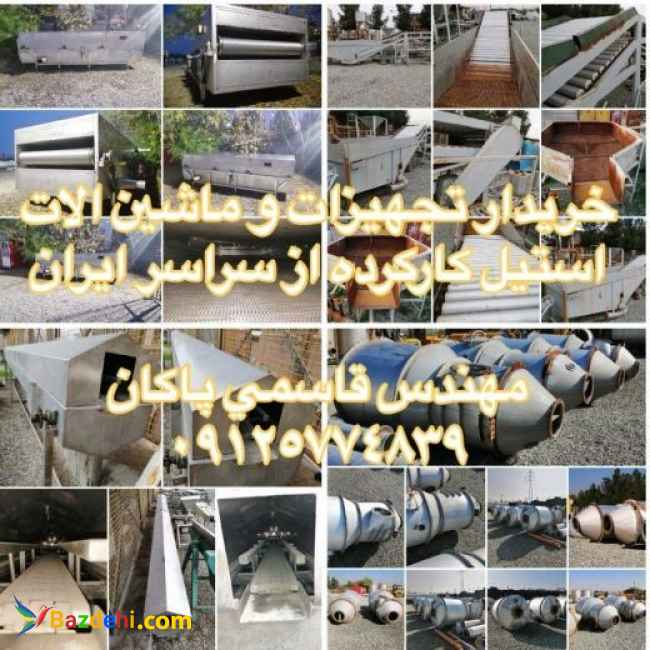 بنگاه مخازن و ماشین آلات استیل قاسمی پاکان خریدار تجهیزات و ماشین آلات استیل کارکرده و دست دوم صنایع غذایی، دارویی و شیمیایی، از قبیل: خط تولید رب_ خط تولید_خط تولید مربا_خط تولید کنسرویجات_خط تولید لبنیات_خط تولید و بسته بندی چیپس سیب زمینی_خط تولید و فرآوری شیره خرما_خط تولید ترشیجات و شوری جات_خط تولید کنسرو ماهی_ خط تولید آب معدنی_ خط تولید ژلاتین_ خط بسته بندی حبوبات_خط تولید دهان شویه_ خط تولید شامپو_ خط تولید لوازم آرایشی_خط تولید رنگهای شیمیایی_خط تولیدصابنو_خط تولید ظروف یکبار مضرف و... از سراسر ایران با بهترین قیمت خریدار:مهندس قاسمی پاکان 09125774839 (بنگاه مخازن و ماشین آلات استیل قاسمی پاکان) (((مخازن استیل ,تجهیزات و ماشین آلات استیل لبنی,نوشیدنی,غذایی,دارویی,آرایشی بهداشتی,شیمیایی جهت بازدید موجود میباشد)))