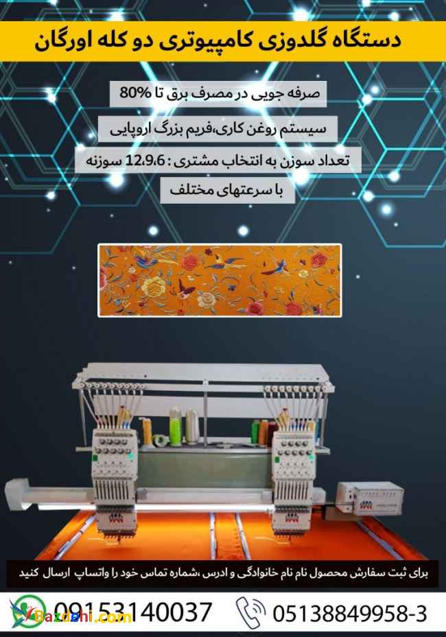 فروش جدیدترین دستگاه گلدوزی کامپیوتری دو کله اورگان