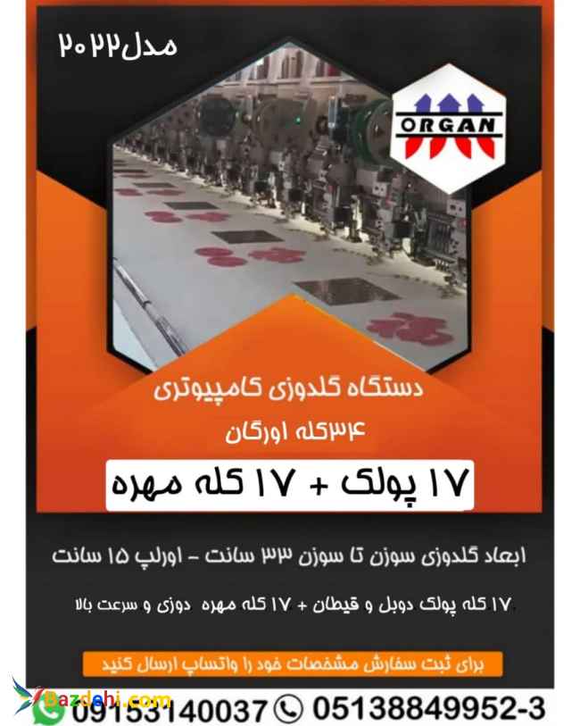 فروش دستگاه گلدوزی کامپیوتری 34 کله اورگان 17 کله پولک + 17 کله مهره