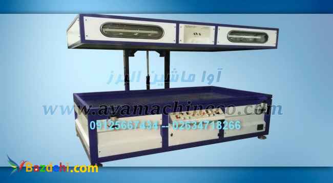 آوا ماشين البرز طراح و توليدکننده ماشين آلات صنایع چوب پرس وکیوم برای روکش کردن درب های چوبی hdf و cnc شده وقطعات چوب و mdf حکاکی شده مورد استفاده قرار میگیرد. روش کار آن با گرم کردن لایه روکش و سپس چسباندن آن بوسیله ایجاد خلاء میباشد. سیستم گرمایش دستگاه بوسیله المنتهای تابشی انجام میگیرد که این نوع المنتها به دلیل سرعت زیاد در گرم شدن، مصرف برق دستگاه را به حداقل میرساند. دستگاه دارای سیستم چروک گیر و سیستم کنترل فشار برای هرچه بهتر شدن کیفیت محصول میباشد. حرکت محفظه المنتها بصورت خودکار و بدون دخالت دست میباشد به همین دلیل نیمه اتوماتیک نامیده میشود. دستگاه دارای سرعت کار مناسب بوده وبه طور میانگین هر 3 دقیقه یکبار قادر به انجام عملیات وکیوم میباشد. ابعاد کلی 250*170*210 سانتیمتر ابعاد میز 240*120 سانتیمتر (به سفارش مشتری) ارتفاع میز کار :6 سانتیمتر