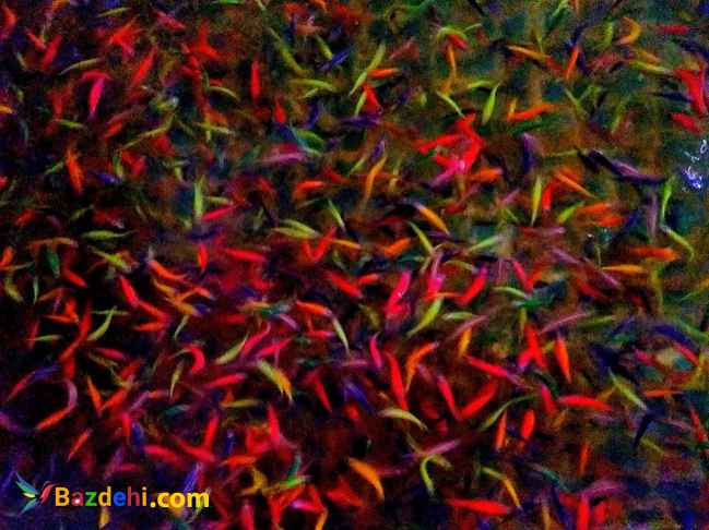 فروش عمده ماهیان زینتی زبرا رنگی در رنگ های قرمز،نارنجی،زرد،آبی،بنفش،سبز چمنی،سبز فسفری در دو سایز بازاری و پیش مولد_مولد _بالاترین کیفیت بدلیل تغذیه با غذای خارجی و آرتمیا _بدون رنگ سفید و معمولی داخل بار _نازلترین قیمت نسبت به سایز و کیفیت _ارسال به تمام نقاط کشور با کمترین هزینه و تضمین سلامت ماهی _محسنی ۰۹۳۷۳۱۷۸۷۰۴