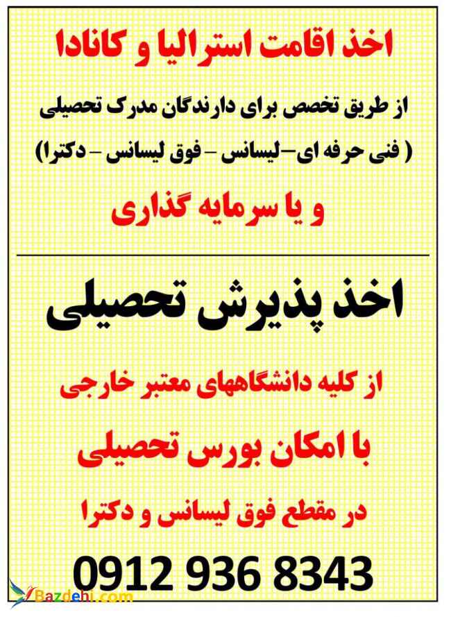 اخذ اقامت استرالیا و کانادا از طریق مهارت و تخصص یا سرمایه گذاری/ اخذ پذیرش تحصیلی از دانشگاههای معتبر استرالیا و کانادا با امکان بورسیه در مقاطع فوق لیسانس و دکترا توسط وکیل امور مهاجرتی از استرالیا