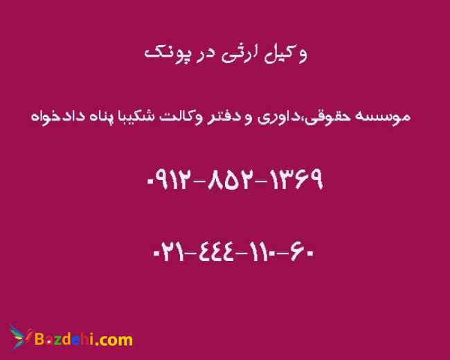 وکیل ارثی در پونک موسسه حقوقی،داوری و دفتر وکالت شکیبا پناه دادخواه شماره های تماس:1369 852 0912 :: 60 110 444 021 قبول دعاوی در تهران و شهرستان ها با بهترین وکلا (در اسرع وقت) دعاوی حسبی(تغییر نام،تنفیذ وصیت نامه،اثبات نسبت،حکم رشد و ...)