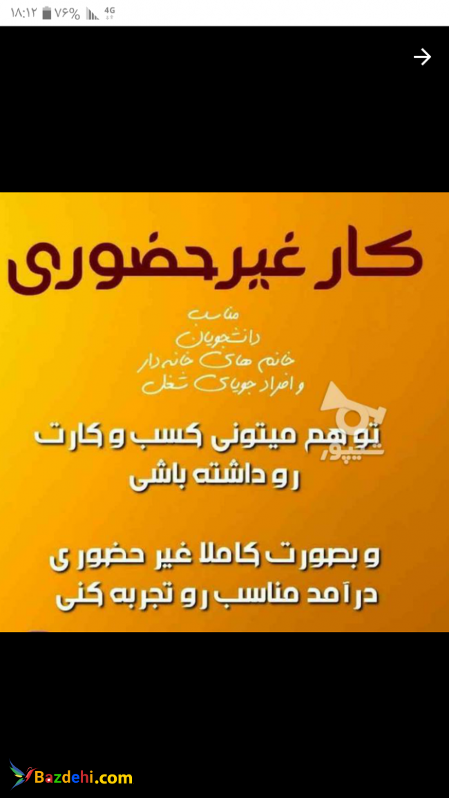با سلام کمپانی گسترش طراحان دعوت به همکاری میکند کار در زمینه خدمات الکترونیکی و هوشمند سازی کسبو کارا بدون محدودیت سنی و جنسییتی تایم کاری بصورت دلخواه و در منزل با تلفن همراه با درآمد بالا دوست دارین یه شغلی رو استارت بزنید اونم با سرمایه خیلی کم در منزل؟ پس وقتو تلف نکن و اگر میخوای یه کار خوب با این ویژگیها داشته باشید تو واتساپ پیام بفرستید یادتون نره که نیاز به سرمایه کم داره