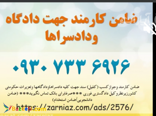 ضامن کارمندوجوازکسب (کفیل) جهت کلیه مراجع قضایی کشور ###صرفابرای بانک نداریم### (ضامن دانشجویی/ضامن استخدام/و...) 09307336926