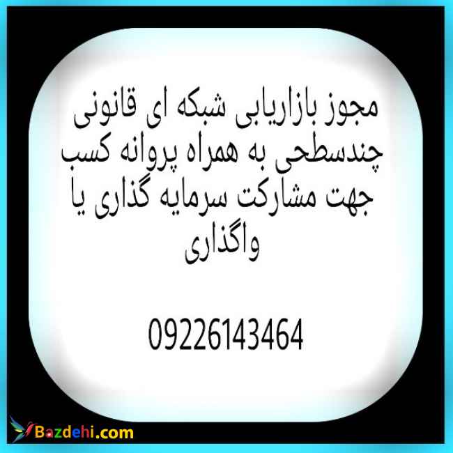 مجوز بازاریابی شبکه ای قانونی چندسطحی به همراه پروانه کسب جهت مشارکت سرمایه گذاری یا واگذاری