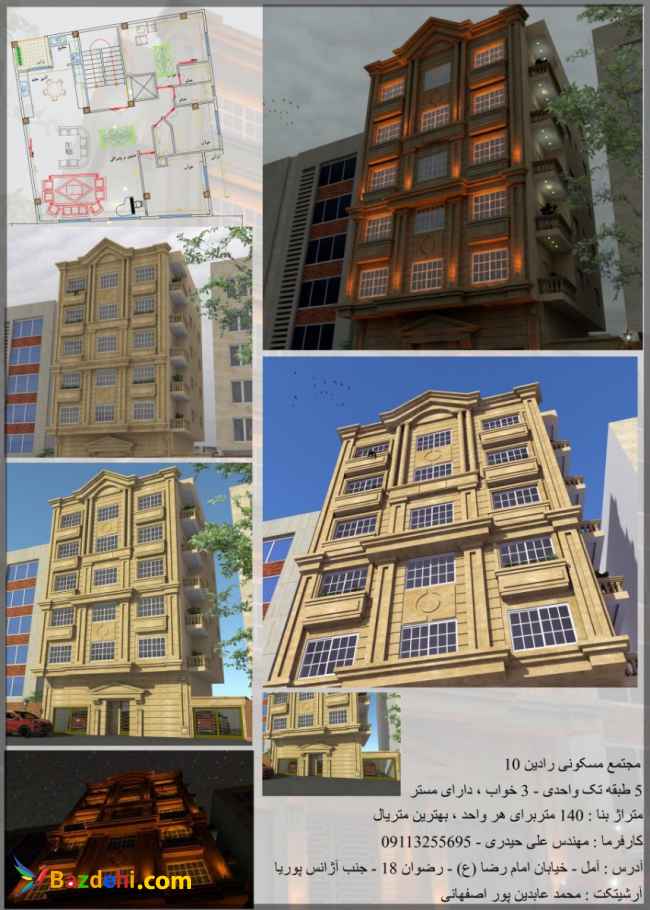 آپارتمان ٥ واحد بصورت تك واحدى. ١٤٠ مترى. بهترين متريال. با نماى بسيار زيبا.