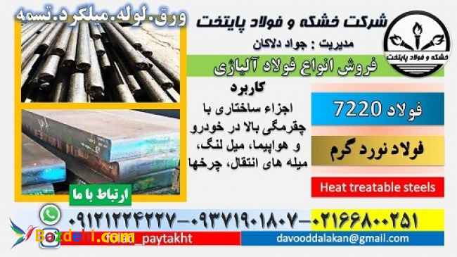 فولاد 7220 DIN WN یا DIN 34CrMo4 -فولاد ساختمانی 7220 (Structural Steels)-در دسته فولادهای آلیاژی قرار می گیرد. که با توجه به مقدار متوسط عنصر کربن در ترکیب شیمیایی می توان با عملیات کوئنچ تمپر به آن استحکام بخشید. این فولاد برای ساخت قطعاتی که تحت بارهای ثابت و سیکلی هستند.همچون میل لنگ، اکسل و محور پینیون ماشین آلات و رینگ تایر خودرو و غلتک های صنایع فولاد. و همچنین سایر قطعات فورج و زنجیرها استفاده می شود. نام های دیگر: CM4 – V330 – 7220S – IASC 7220 – 35ChML – 708A37 – 4135 – SCM432H خصوصیت: سختی پذیر خوب، استحکام متوسط و مقاومت سایشی متوسط کاربرد: ساخت اجزاء سازه ای در صنایع خودرو سازی و هوایی مانند میل لنگ محور. اکسل، شاتون، محور پینیون، رینگ تایر و همچنین غلطک های صنایع فولاد اجزاء ساختاری با چقرمگی بالا در خودرو و هواپیما، میل لنگ، میله های انتقال، چرخها شرکت خشکه و فولاد پایتخت (( مدیریت : جواد دلاکان )) فروش-صنعتگران عزیز، افتخار داریم .که سالها تجربه گرانبهای خویش را در زمینه عرضه انواع ورق آلیاژی و انواع فولاد آلیاژی. برای خدمت رسانی به شما هموطنان کشور عزیزمان ایران ارائه می دهیم. از اینکه شرکت خشکه و فولاد پایخت را جهت خرید خود انتخاب می نمایید سپاسگزاریم. ارتباط با ما: 09121224227 09371901807 تلفن: 02166800251 فکس: 66800546