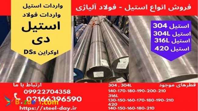 فروش میلگرد 420- میلگرد 316-میلگرد 316L-میلگرد 304 تولید کارخانه DSs اوکراین قطرهای موجود برای فروش شامل 304,304L 140-170-10-190-200-210 316L 130-150-160-170-180-190-210 420 140-150-160-180-210 فروش انواع فولاد آلیاژی و استیل استیل دی (Steel day) با سالها تجربه در زمیه عرضه و توزیع انواع استیل بگیر و استیل نگیر. و همچنین انواع فولادهای نسوز و فولادهای دریایی و ساختمانی توانسته است رضایت مشتریان خویش را فراهم نماید. زیرا کارشناسان مجرب استیل دی آماده اند تا در زمینه مشاوره و ارائه دادن بهترین پیشنهادات خرید محصول به مشتریان عزیز خدمات رسانی نمایند. صنعتگر محترم و گرامی از اینکه استیل دی را جهت خرید فولاد آلیاژی مورد نیاز خویش انتخاب می نمایید از شما سپاسگزاریم. تمام محصولات استیل دی بر حسب نوع کالا دارای گواهینامه ها و آنالیزهای معتبر داخلی و خارجی می باشند. ارتباط با ما: 09922704358 02166396590 واتس آپ: 09922704358 ارتباط با ما در شبکه های اجتماعی (با کلیک بر روی لینک های زیر به ما بپیوندید) https://t.me/steel_day تلگرام https://www.instagram.com/steel_day.ir اینستاگرام https://twitter.com/MDlakan توییتر ایمیل: این آدرس ایمیل توسط spambots حفاظت می شود. برای دیدن شما نیاز به جاوا اسکریپت دارید