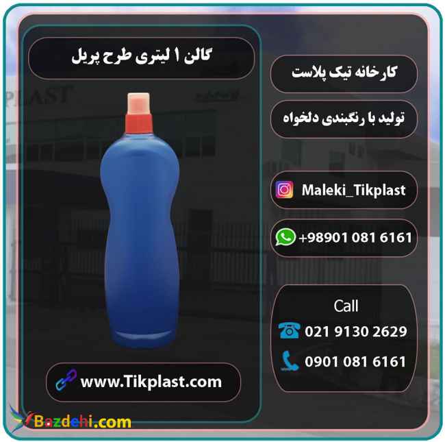 کارخانه تیک پلاست تولید کننده و عرضه کننده انبوه انواع مصنوعات پلاستیکی در اشکال و ظرفیت های متنوع است. این کارخانه با استفاده از انواع دستگاه های پلاستیک بادی ، تزریق و بادکن انواع بسیار مختلفی از ظروف پت ، پلی اتیلن و پلی پروپیلن و ... را طراحی و تولید می کند. کیفیت بسیار بالای ظروف پلاستیکی برند تیک پلاست باعث شده تا مشتریان و مصرف کنندگان با اطمینان خاطر از این ظروف حتی برای نگه داری مواد غذایی نیز استفاده کنند. صنعت شوینده یکی از بزرگترین صنایعی است که عموم مردم همواره برای حفظ پاکیزگی و رعایت بهداشت به فراوانی از مواد شوینده استفاده می کنند. به همین دلیل تقاضای مصرف ظروف پلاستیکی در صنعت شوینده برای بسته بندی محصولات مختلف بسیار بالا است. بطری 1 لیتری طرح پریل یکی از ظروف پرطرفدار و پر مصرف است که برای نگه داری مواد شوینده به خصوص مایع ظرفشویی بسیار مورد استفاده قرار می گیرد. تیک پلاست کارخانه تولید کننده بطری مایع ظرفشویی یک لیتری طرح پریل قوطی مایع ظرفشویی 1 لیتری بطری مایع ظرفشوی پلاستیکی پلی اتیلن طرح پریل مواد نو با رنگبندی قیمت بطری مایع ظرفشویی ظرف مایع ظرفشویی طرح پریل همراه با درب دو و سه تکه برای خرید انواع بطری یک لیتری طرح پریل در شهر های مشهد ، اصفهان ، تهران ، کرج ، شیراز ، کرمانشاه ، اهواز ، زاهدان ، بوشهر ، خوزستان ، تبریز ، ارومیه ، گرگان و ... با شماره های موجود فقط تماس حاصل نمایید. آدرس کارخانه 1 : کرج ، هفت جوی شهرک صنعتی زرین دشت آدرس کارخانه 2 : تهران ورامین مدیر فروش : 09355131323 تلفن ثابت : 02191302629