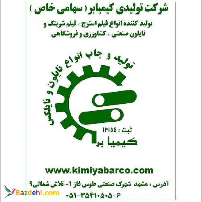 تولید کننده انواع پلاستیک,نایلون,نایلکس شرکت کیمیابر مشهد تولیدکننده فیلم استرچ ، نایلون شرینگ ، نایلون کشاورزی و پاکت بسته بندی یکی از بزرگترین و اولین کارخانجات صنعت پلاستیک در شرق کشور تولید کننده انواع نایلون در سایز و رنگ های مختلف به همراه چاپ تبلیغاتی آماده قرار داد با کلیه شرکت ها تولید کننده برتر انواع نایلون نایلکس سلفون کیسه زباله رولی و فله ای کیسه فریزر رولی و فله ای و… تولید نایلون دراندازه های مختلف همراه باچاپ کیسه رول شیرینگ نایلکس دسته موزی رکابی با سالها سابقه در خدمت فعالان و فروشندگان صنعت پلاستیک کیمیابر تولیدکننده انواع : پیش بند پزشکی و دندان پزشکی فیلم استرچ و نایلون شرینگ بسته بندی نایلون کشاورزی تا عرض 4 متر نایلون چاپی دسته رکابی نایلون چاپی دسته موزی نایلون رول شیرینگ انواع فیلم پلی اتیلن فیلم استرچ بسته بندی نایلون و نایلکس. درب ساده و دسته دار در تمامی سایزها تولید کننده انواع پلاستیک , تولید انواع پلاستیک , کارخانه تولید نایلون و نایلکس , تولید کننده انواع نایلون , تولید کننده نایلون , نایلون شرینک پلی اتیلن , فیلم استرچ , استرچ فیلم صنعتی,نایلون کشاورزی , قیمت نایلون کشاورزی , نایلکس رکابی , فروش کیسه زباله , تولید کننده کیسه زباله , تولید کاور صنعتی و ایزوگامی , نایلون استرچ برای اطلاعات بیشتر از این محصول به وبسایت شرکت مراجعه فرمائید. http://www.kimiyabarco.com اینستاگرام: https://www.instagram.com/kimiyabarco/ مشاوره تلگرامی : ? @kimiyabarco تلفن : 05135410505 موبایل: 09100075707 آدرس: مشهد - شهرک صنعتی توس ?از فروشگاه های زنجیره ای، سوپرمارکت ها، نانوایی ها، نان فانتزی ها,،داروخانه و کلیه اصناف جهت ثبت خرید دعوت بعمل میآید. ?صدور فاکتور رسمی جهت ارگان ها، شرکت ها و فروشگاهها