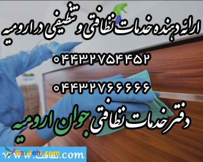 شرکت خدماتی نظافتی ارومیه به منظور نظافت منازل،راه پله،پارکینگ،حیاط و... با کادری مجرب در خدمت شما دوستان عزیز می باشد تلفن های تماس 044-32766666 044-32754452 شماره تماس 09026287015