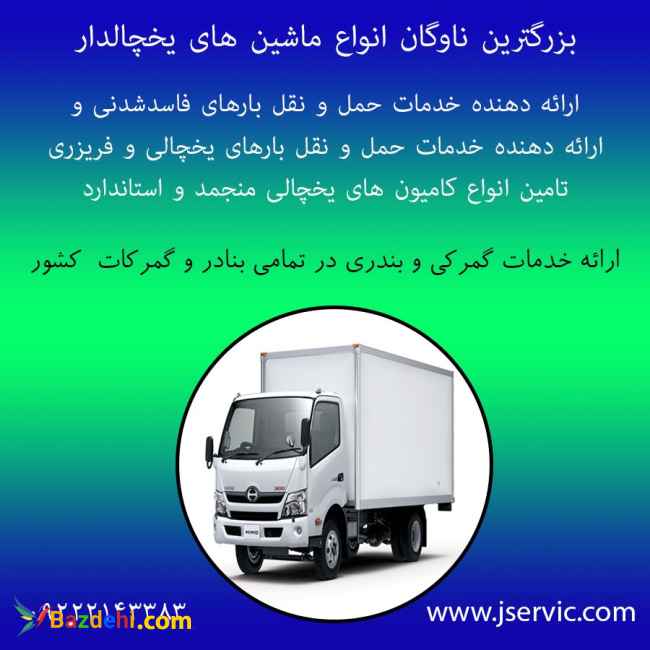 حمل بار یخچالی بین شهری و بین اللمللی در اسرع وقت بزرگ ترین ناوگان انواع ماشین های یخچالدار شامل کامیون یخچالدار –کامیونت یخچالدار –وانت یخچالدار ارائه دهنده خدمات حمل ونقل بارهای فاسد شدنی با بهترین شرایط حمل مواد غذایی فاسد شدنی و منجمد –حمل گوشت و فراورده های گوشتی حمل لبنیات و مواد پروتئینی حمل تره بار و سبزیجات برای هماهنگی 09222143383 09141403383 با نصب اپلیکیشن جی سرویس با ده ها هزار نوع کامیون و کامیونت یخچالدار به صورت مستقیم و انلاین با ما در ارتباط باشید حمل ونقل کالای یخچالدار-حمل ونقل بار یخچالی-شرکت حمل ونقل بار یخچالی جهت دریافت و نصب برنامه عدد 22را به 09222143383پیامک نمایید