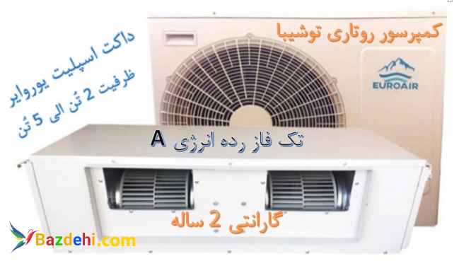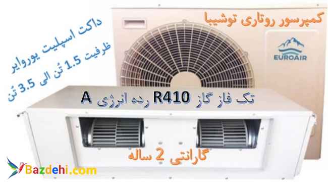 فروش داکت اسپلیت، فروش فن کوئل، فروش مینی چیلر، فروش چیلر مرکزی داخلی داکت اسپلیت دارای ظرفیت های: 24 هزار - 30 هزار - 36 هزار ?تخفیف ویژه = هر ظرفیت 15 %? 1 - داکت اسپلیت کمپرسور روتاری توشیبا: ظرفیت 1.5 تُن الی 3.5 تُن - تک فاز گاز R410 رده انرژی A 2 - داکت اسپلیت کمپرسور اسکرال کوپلند: ظرفیت 4 تُن الی 5 تُن - سه فاز گاز R22 رده انرژی B * دو سال ضمانت کمپرسور و قطعات فنی جهت کسب اطلاعات بیشتر با شماره زیر تماس حاصل فرمایید: آقای مسعودی - 09108889558 قیمت = توافقی