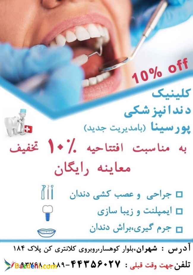 دندانپزشكى پورسينا با خدمات زيباى با تخفيف افتتاحيه با دكتر متخصص ايمپلنت جرم گيرى كامپوزيت جهت وقت قبلى:44356027