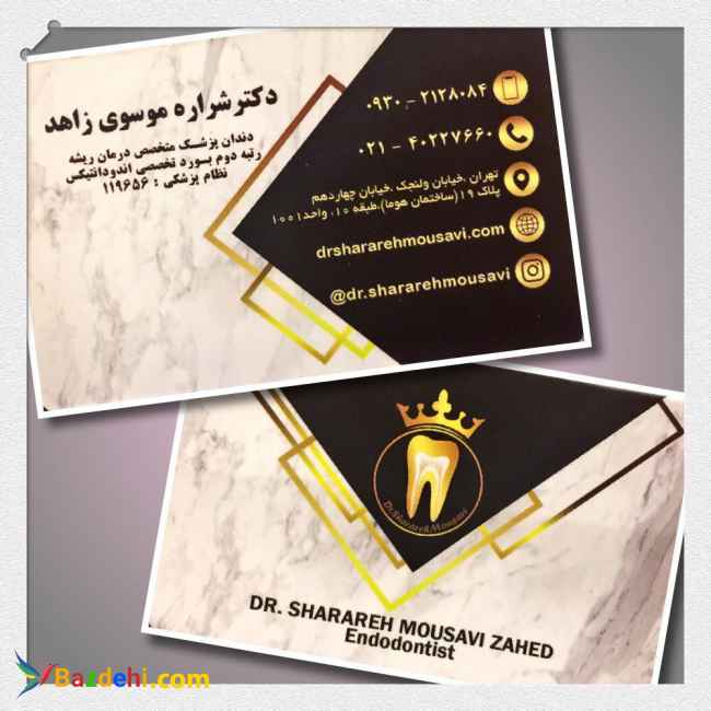 متخصص درمان ریشه در تهران دکتر شراره موسوی زاهد، متولد 1362 است و متولد تهران است -خانم دکتر موسوی پس از گذراندن دوره دبیرستان و پیش دانشگاهی در مدرسه ابوریحان تهران وارد دوره دکترای دندانپزشکی در سال 1380 در شهر تهران شدند . خانم دکتر در سال 1382 موفق به کسب رتبه پنجم امتحانات جامع علوم پایه کشوری شدندو همچنین پس از اخذ درجه دکترای عمومی در سال 1387 و پس از سپری کردن دوره 2 ساله طرح عمومی ، در سال 1390 وارد دوره تخصص در رشته درمان و جراحی ریشه دندان در اصفهان شدند . خانم دکتر در طی 3 سال گذراندن دوران تخصص موفق به انتشار مقالات مختلف در ژرنال های معتبر داخلی و خارجی و همچنین ارائه سخنرانی در کنگره های مختلف شدند . دکتر شراره موسوی زاهد در سال 1393 در امتحان بورد تخصصی اندودانتیکس رتبه دوم را کسب کرده است . تیم پزشکی خانم دکتر موسوی آماده ارائه تمامی خدمات دندانپزشکی برای شهروندان عزیز می باشد دکتر شراره موسوی بین سال های 93 تا 96 در دانشکده دندانپزشکی دانشگاه شهید بهشتی فعالیت تدریس دانشجویان دندانپزشکی را عهده دار بودند . وی از سال 93 مشغول انجام درمانهای تخصصی ریشه شامل عصب کشی ، درمان مجدد ریشه ، جراحی ریشه ،درمان آبسه ، اپکسوژنزیس ، اپکسیفیکاسیون ، درمان دندان های ضربه خورده ، تشخیص درد و بلیچینگ دندان های وایتال و نان وایتال با استفاده از ابزار مدرن و پیشرفته در محیطی آرام می باشند .در مطب تخصصی ایشان علاوه بر درمان های فوق ، درمان های تخصصی دیگر شامل ایمپلنت ، جراحی لثه ، سینوس لیفت ، کشیدن دندان ، ترمیم و روکش دندان و درمانهای زیبایی توسط همکاران متخصص لثه و ترمیمی و پروتز انجام می شود . آدرس کلینیک : تهران - خیابان ولنجک - خیابان چهاردهم - پلاک 19 - (ساختمان هوما ) طبقه 10 - واحد 1001 شماره تماس : 02140227660 - 09302128084