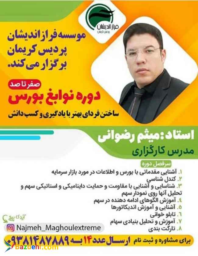آموزش صفر تا صد بورس تمامی مراحل را به شما با بهترین نحو آموزش میدهند برای اطلاعات بیشتر با شماره 09130702841 تماس بگیرید