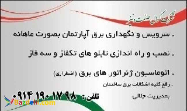 رفع خرابی برق سیمکشی ساختمان سیم کشی تلفن و آیفون نصب لوستر تعویض فیوزها نصب هالوژن نصب نور مخفی رفع اتصالات نصب کلید وپریز رفع نویز و اتصالی و رفع خرابی سیم کشی تلفن در کوتاهترین زمان و نازلترین قیمت نصب انواع اعلان حریق عیب یابی اعلان حریق تعمیر اعلان حریق