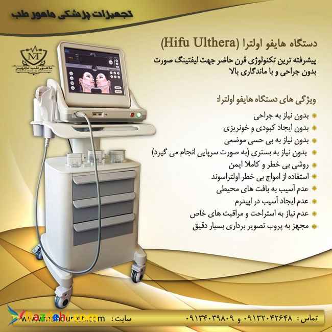 *** مشاوره و تجهیز فقط به صورت حضوری در محل شرکت ماهور طب انجام می شود. *** لیفتینگ و جوان سازی پوست با ماندگاری بالا تنها در یک جلسه با دستگاه هایفو اولترا هایفو اولترا (Hifu Ulthera) پیشرفته ترین تکنولوژی قرن حاضر جهت لیفتینگ صورت بدون جراحی با ماندگاری بالا و فقط در یک جلسه می باشد که مورد توجه فراوان پزشکان و تمامی علاقمندان به طب زیبایی قرار گرفته است. با این تکنولوژی فوق مدرن می توان به طور کاملا دقیق و محاسبه شده انرژی امواج صوتی را در عمق دلخواهی در لایه های زیرین پوست متمرکز (Focus) نمود، بدون این که هیچ گونه آسیبی به سطح پوست وارد شود. دستگاه جوانسازی هایفو اولترا دارای 5 کارتریج جوانسازی شامل 1.5 و 3 و 4.5 و 8 و 13 میلی متر است که عمق های 1.5 و 3 و 4.5 میلی متر برای افتادگی های صورت و غبغب استفاده می شود و عمق های 8 و 13 میلی متر برای لیفتینگ و جوانسازی بدن به کار برده می شود. ویژگی های دستگاه هایفو اولترا : » دارای 3 کارتریج در عمق های 1.5 و 3 و 4.5 میلی متر برای صورت و گردن » دارای 2 کارتریج ویژه لاغری در عمق های 8 و 13 میلی متری به صورت آپشنال » بدون نیاز به جراحی » بدون ایجاد کبودی و خونریزی » بدون نیاز به بی حسی موضعی » بدون نیاز به بستری (به صورت سرپایی انجام می گیرد) » روشی بی خط و کاملا ایمن » استفاده از امواج کاملا بی خطر اولتراسوند (امواج صوتی) » بدون ایجاد هیچگونه عوارض پوستی مانند لک و زخم » عدم آسیب رسانی به بافت های محیطی » عدم ایجاد آسیب در اپیدرم » مجهز به پروب تصویربرداری بسیار دقیق » عدم نیاز به استراحت و مراقبت های خاص » قابلیت درمان انواع تیپ های پوستی (روشن تا تیره) » اثر ماندگاری بالا تا حدود 2 سال » امکان لیفتینگ و جوان سازی پوست تنها با یک جلسه » رعایت اصول آرگونومیک در طراحی دستگاه و هندپیس جهت افزایش ایمنی و حفاظت از پزشک و بیمار برای دریافت مشاوره رایگان در مورد دستگاه ها و تجهیزات پزشکی و زیبایی با ما تماس بگیرید: مشاور فروش : 09132042648 *** مشاوره و تجهیز فقط به صورت حضوری در محل شرکت ماهور طب انجام می شود. *** توجه : شرکت ماهور طب هیچ گونه فروش اینترنتی ندارد!!!