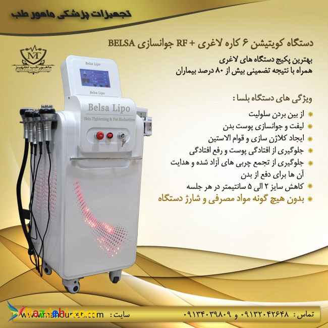 *** مشاوره و تجهیز فقط به صورت حضوری در محل شرکت ماهور طب انجام می شود. *** دستگاه لاغری و جوانسازی کویتیشن BELSA با بهره گیری از چند هندپیس و تکنولوژی های بینظیر آماده است تا بهترین نتایج را به شما هدیه دهد. با این دستگاه در کنار یک رژیم غذایی با کالری مناسب و چند روز پیاده روی بیمار به راحتی کاهش سایز و کاهش وزن خواهد داشت و بیمار بدون هیچگونه توقف در مسیر کاهش وزن یا در اصطلاح بدون هیچ گونه استاپ وزنی به مسیر خود با موفقیت ادامه خواهد داد. دستگاه لاغری 6 کاره بلسا به همراه جوانسازی بدون هیچگونه عوارض جانبی است و برای استفاده در تمامی نقاط بدن مناسب است. استفاده از این دستگاه لاغری نیاز به هیچ گونه مواد مصرفی و هزینه شات ندارد. دستگاه لاغری بلسا برای لیفت و جوانسازی پوست صورت و بدن نیز بسیار عالی است. بلسا یک تجربه لاغری به همراه آر اف جوانسازی می باشد که علاوه بر لیفتینگ بینظیر پوست مانع از هرگونه صدمه به اپیدرم می شود. با بلسا لاغری و تناسب اندام به همراه جوانسازی را در یک پکیج داشته باشید. ویژگی های دستگاه لاغری بلسا بهترین پکیج دستگاه لاغری و جوانسازی همراه با نتیجه تضمینی در بیش از 80 درصد بیماران » درمان بدون نیاز به بیهوشی و غیرتهاجمی » کاربری آسان و راحت و کاملا بدون درد » اثربخشی در عین امنیت و بدون ایجاد اسکار » زمان درمان کوتاه و زمان بقا اثر درمانی بالا » قابلیت درمان چربی های موضعی در قسمت بازوها، شکم، پهلو، باسن، شانه، بالای ران، داخل ران ها، پشت زانو و … » از بین بردن سلولیت » لیفت و جوانسازی پوست صورت و بدن » ایجاد کلاژن سازی و قوام الاستین » تغذیه و تجدید قوای پوست » فعال کردن جریان خون و اکسیژن در پوست » جلوگیری از افتادگی پوست و رفع افتادگی » جلوگیری از تجمع چربی های آزاد شده و هدایت آن ها برای دفع از بدن » کاهش سایز 2 الی 5 سانتیمتر در هر جلسه » بدون هیچ گونه مواد مصرفی و شارژ دستگاه ویژگی های خرید از شرکت ماهور طب: ∗ وارانتی تضمین کیفیت و جوابدهی دستگاه ∗ آموزش کاملا رایگان همراه با گواهینامه گذراندن دوره آموزشی در محل شما ∗ یکسال گارانتی قطعات، تعویض و تعمیر قطعات بدون کوچکترین هزینه ∗ با ده سال خدمات پس از فروش ∗ ارسال به سراسر کشور برای دریافت مشاوره رایگان در مورد دستگاه ها و تجهیزات پزشکی و زیبایی با ما تماس بگیرید: مشاور فروش : 09132042648 *** مشاوره و تجهیز فقط به صورت حضوری در محل شرکت ماهور طب انجام می شود. *** توجه : شرکت ماهور طب هیچ گونه فروش اینترنتی ندارد!!!