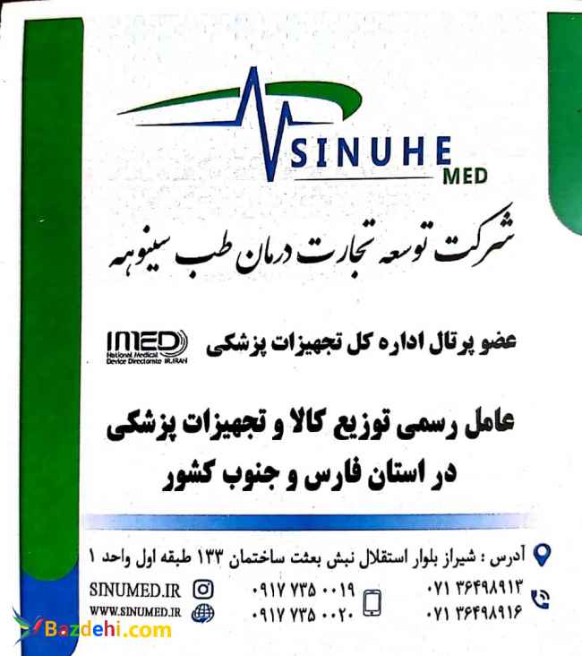 شیراز ، بلوار زرهی ، نبش بعثت ، ساختمان ۱۳۳ ، طبقه دوم ، شرکت توسعه تجارت درمان طب سینوهه.