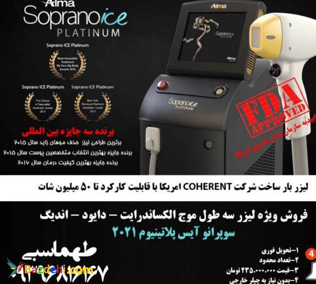 *فروش بصورت نقد و اقساط* لیزر بار 800W قیمت نقد:235 میلیون شرایط اقساطی:170میلیون +10قسط 9میلیونی برنده بهترین کیفیت لیزر در سال 2016 لیزر بار آمریکایی قابلیت کارایی تا 50میلیون شات دستگاه طراحی شده توسط شرکت آلما لیزر آمریکایی لیزر بار کوهرنت آمریکا مورد تایید سازمان غذا و دارو آمریکا برای انواع مو و پوست با رنگ های مختلف دستگاه داری شماره سریال هست تا خیال کلینیک داران از اصل بودن دستگاه خریداری شده آسوده باشد سه طول موج همزمان در یک اپلیکاتور بدون درد: درمان تقریبا بدون درد بوده و با حس ماساژ همراه است. مناسب پوستهای روشن، موهای زمخت یا نازک و ایمنی بالا برای پوستهای تیره و سیاه پوست برنزه: درمان در هر زمانی از سال قابل انجام است حتی در فصل تابستان بدون نقاهت روشی دقیق • ایده آل برای هر ناحیه ای از بدن مانند نواحی حساس یا نواحی که دسترسی به آنها سخت است مانند گوشها، سوراخ بینی و خط بیکینی. تکرار بالایی از پالس های کوتاه به عمق غشاء پوست نفوذ کرده و به صورت بالینی و با گرما اندوزی موثر و بدون درد موهای زائد را از بین می برد. تکنولوژی ICE علاوه بر خنک کردن سطح پوست از سوختگی های سطحی جلوگیری کرده و باعث می شود که این کار با کارایی بالا و تقریبا بدون درد انجام می شود. طول موج ALEX 755NMمناسب برای طیف گسترده ای از انواع موها. لیزر پلاتینیوم درسراسر کلینیک های جهان استفاده می شودو می توان گفت تنها روش بالینی اثبات شده برای لیزر موهای زائد است که بدون درد است. در این روش مو ها به راحتی را از بین می روند. استفاده ی هم زمان از سه طول موج روند درمانی بسیار سریع است. با ترکیب سطح جذب و نفوذ سه طول موج مختلف، همراه با پوشش درمانی و سوپرانو آیس پلاتینیوم به ایمن ترین و بهترین درمان حذف موهای زائد تبدیل شده است. پوست نرم تر از قبل می شود شرکت تجهیزات پزشکی فانو به شما پیشنهاد می دهد که آن را امتحان کنید. نتایج خوشایند لیزر پلاتینیوم باعث شده که بسیاری این دستگاه را برای انجام عمل لیزر انتخاب کنند و به راحتی و بدون درد از شر مو های زائد راحت شوند.شسث برای گرفتن مشاوره حرفه ای و تخصصی توسط کادر شرکت فانو و ثبت اطلاعات تماس بگیرید