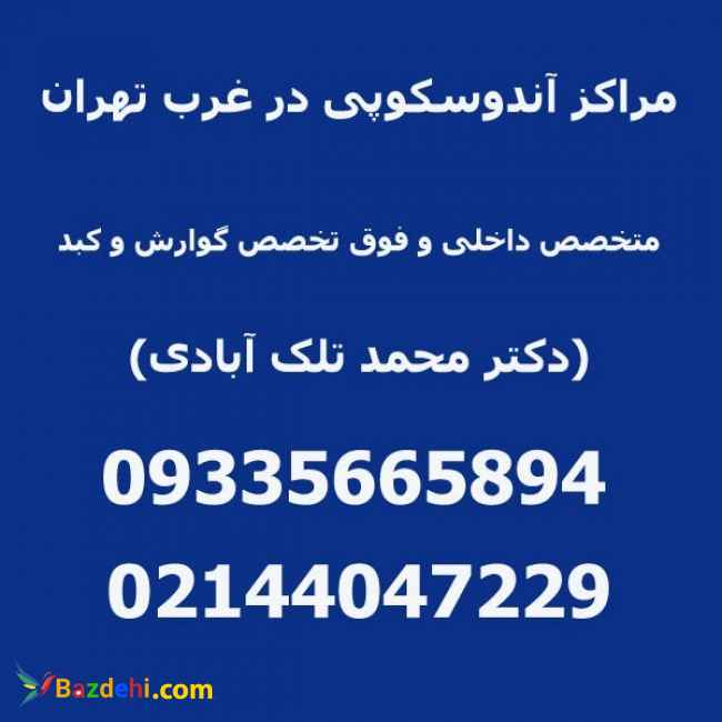 مراکز آندوسکوپی در غرب تهران متخصص داخلی و فوق تخصص گوارش و کبد(دکتر محمد تلک آبادی) 09335665894 فوق تخصص گوارش،کبد،مجاری صفراوی،آندوسکوپی و کولونوسکوپی،تست UBT آدرس مطب:فلکه دوم صادقیه،ابتدای آیت الله کاشانی ،پشت بیمارستان ابن سینا،خیابان شهید اعتمادیان،پلاک30، بالای همکف،واحد6 شماره های تماس:02144047229 02144048016 02144047549 02144050750 09335665894 آندوسکوپی لوله ای است انعطافپذیربالایی دارد که به دوربین مجهز است و پزشک متخصص گوارش آن را وارد بدن بیمار می کنند و به طور کامل اجزا و اعضای مربوطه بیمار را بررسی می نمایند. لوله آندوسکوپ از طریق برش بدن و یا از طریق دهان یا مقعد وارد بدن میشود. هر چند که این روش عوارضی نیز دارد، ولی مزایای آن بیشتر است.