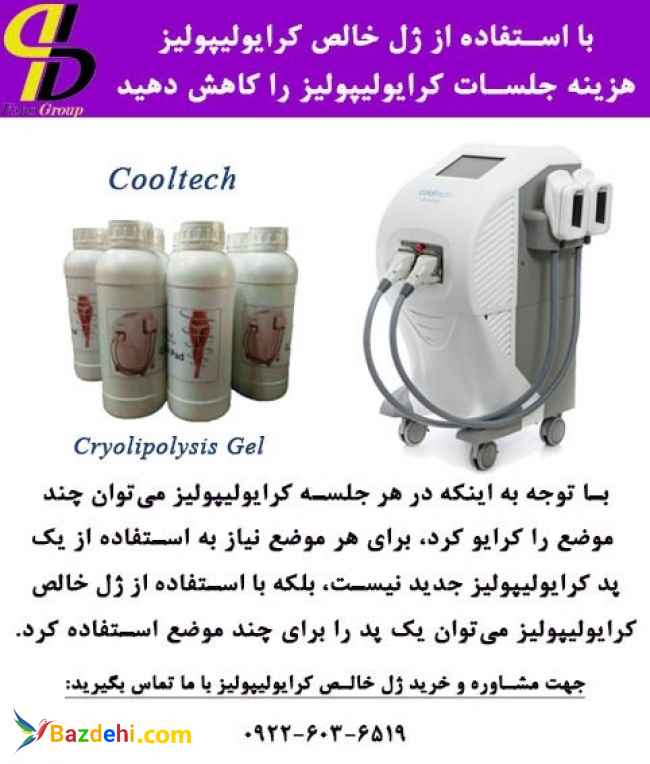 چگونه هزینه های کرایولیپولیز را کاهش دهیم؟ با استفاده از ژل خالص کرایولیپولیز هزینه جلسات کرایولیپولیز را کاهش دهید با توجه به اینکه در هر جلسه کرایولیپولیز می‌توان چند موضع را کرایو کرد، برای کاهش هزینه جلسات کرایولیپولیز می‌توان از پدی که برای یک موضع استفاده شده است در صورت داشتن استحکام و قوام کافی با اضافه کردن چند قطره ژل خالص در نواحی دیگر نیز استفاده کرد. به اینصورت که پد استفاده شده را در ناحیه جدید قرار داده و با اضافه کردن چند قطره ژل خالص به قسمت های از پد که در زیر قسمت‌های فلزی هندپیس قرار می گیرد از همان پد اولیه برای نواحی دیگر نیز استفاده کرد. ژل خالص کرایولیپولیز کولتک با توجه به غلظت و ویسکوزیته بسیار بالای مناسب جهت استفاده برای کلیه دستگاه های کرایولیپولیز می‌باشد و توصیه می‌شود جهت کاهش هزینه‌های جلسات کرایولیپولیز به همراه هر 50 عدد ژل پد، یک کیلوگرم ژل خالص نیز خریداری شود تا در مواقع نیاز به جای استفاده از پد جدید از ژل خالص استفاده کرد. مشخصات ژل خالص کرایولیپولیز کول تک: 1-ژل خالص کرایولیپولیز کول تک دارای غلظت بسیار زیاد و تا دمای منفی 40 درجه مقاوم می‌باشد. 2- هر بطری حاوی یک کیلوگرم ژل خالص کول تک می باشد. 3- قیمت هر بطری 720000 تومان شماره تماس جهت مشاوره و خرید : 6519-603-0922