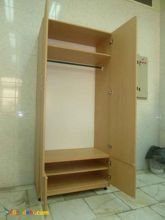 جهت تعویض لباس کارکنان آزمایشگاه کمد همراه با جا کفشی طراحی شده ؛ دارای در مجزا میباشد ,که آلودگی های کفش به لباسها منتقل نشود
