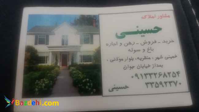 املاک حسینی خمینی شهر فروش خرید رهن وجاره باغ وسوله تهیه زمین طرح ونقشه بروز با استانداردهای جهان