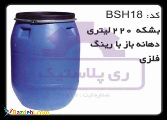 بشکه پلاستیکی 220 لیتری دهانه باز با درب پیچی